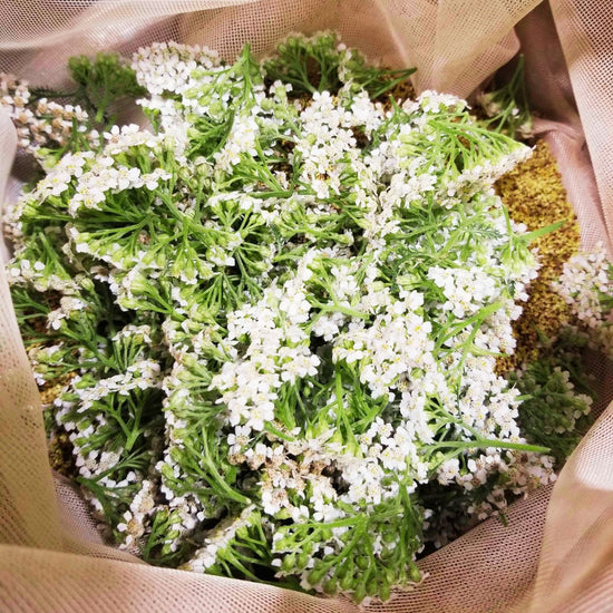 Shown above: Yarrow from Bondegaard, planted and harvested by our meadmaker, which was a key ingredient in our very first bottle of the month, "First Harvest." -